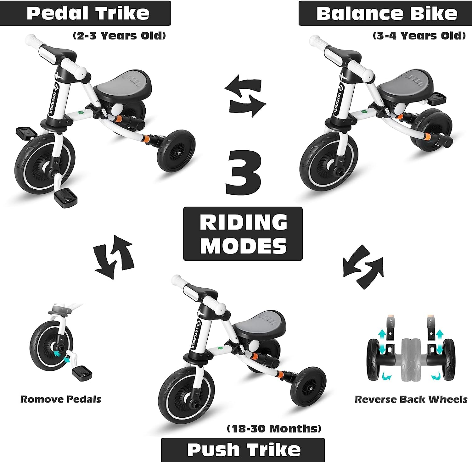 3 in 1 Kids Tricycle for Age 18 Months to 4 Years Old Kids, Toddler Baby Balance