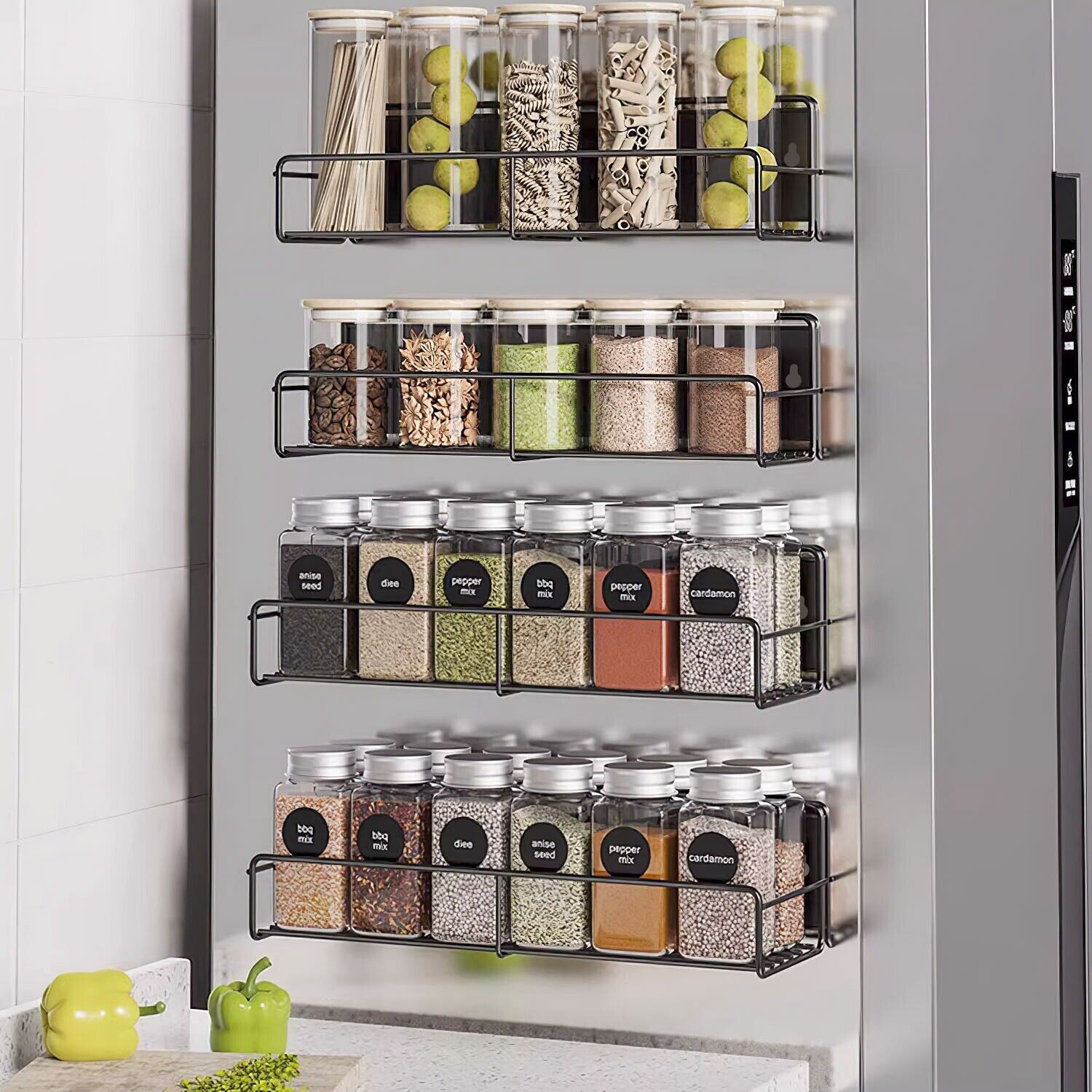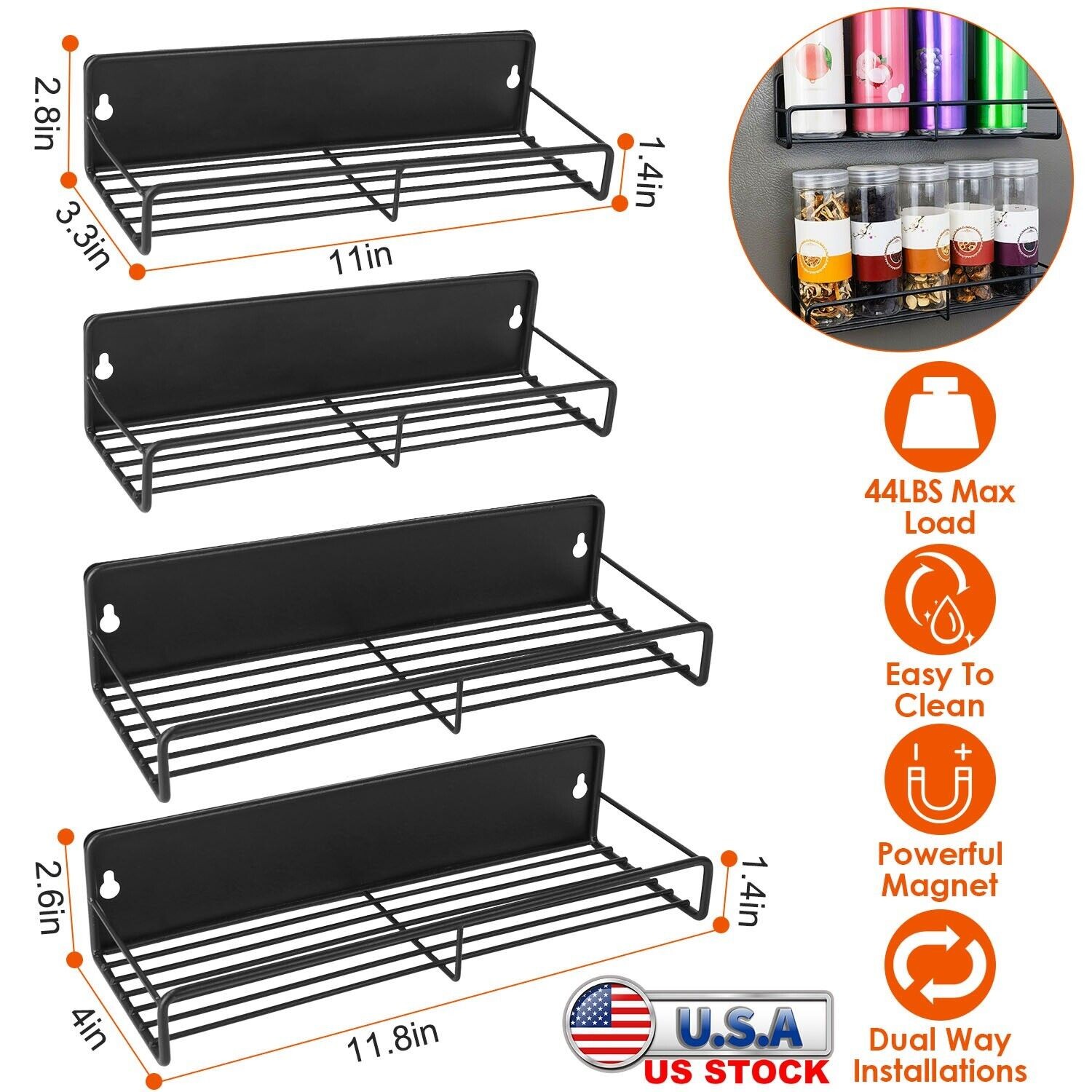 4PC Magnetic Spice Rack Organizer Kitchen Fridge Storage Shelf Wall Shelf Holder