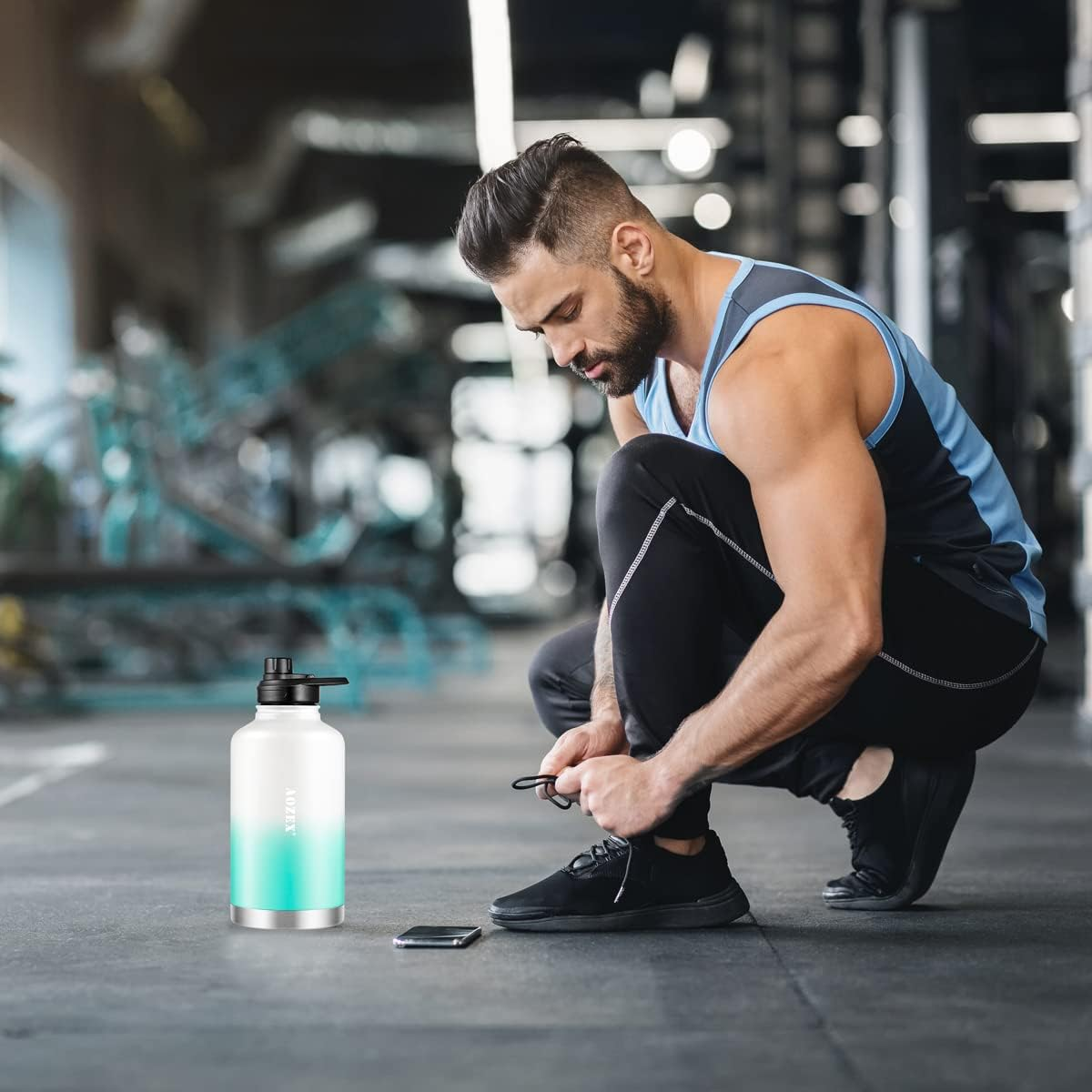 64 OZ Insulated Water Bottle with Straw, Stainless Steel Half Gallon Large Water
