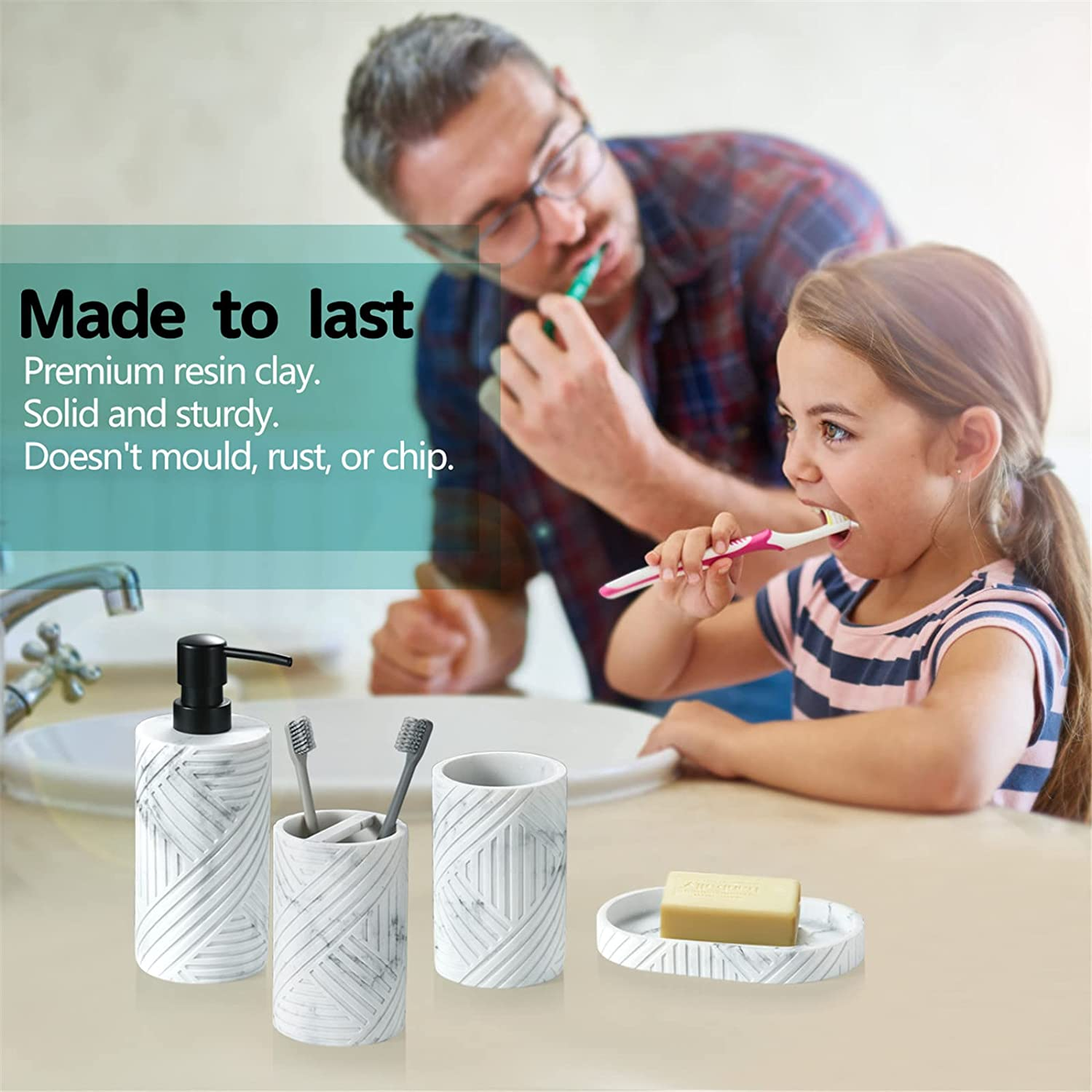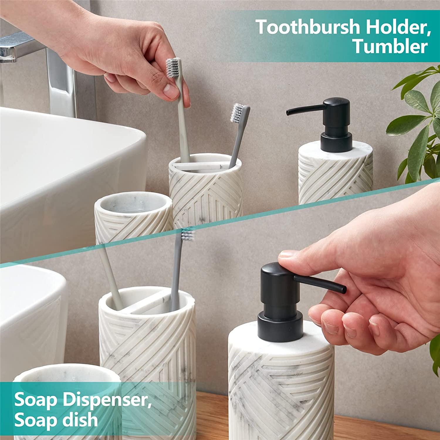 Tumbler, Toothbrush Holder, Soap Dispenser, Soap Dish