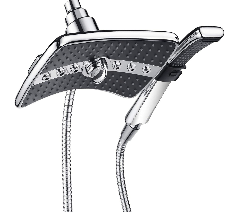 High pressure rain fall shower heads with handheld spray, fixed shower head with multi spray settings, enjoy a spa shower at home