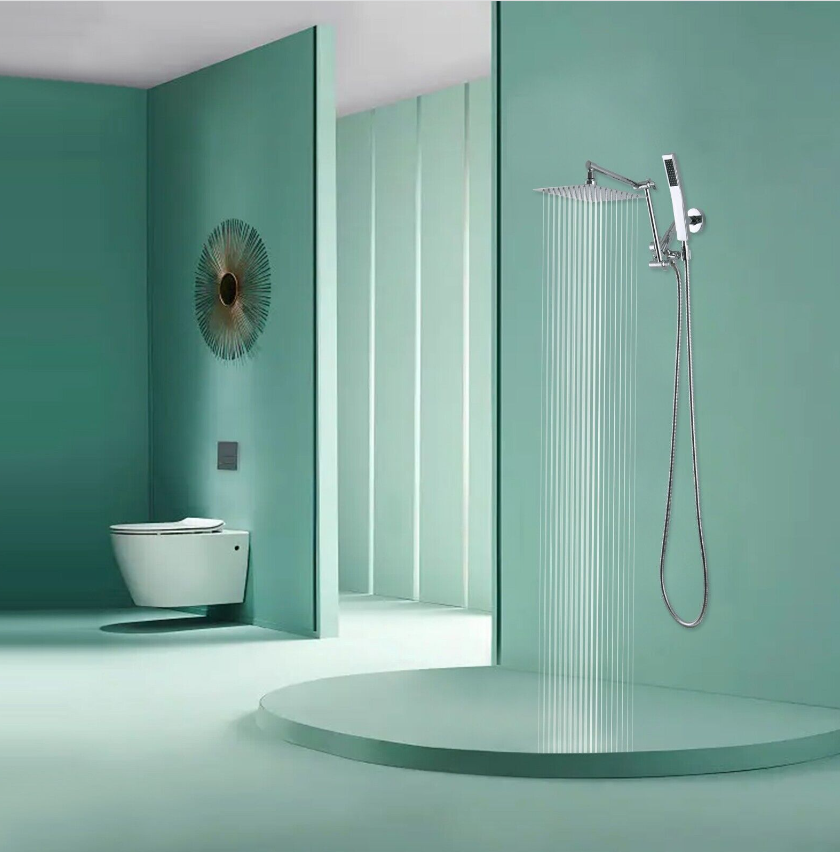 Chrome All Metal Square Shower Head Combo 8" Rain Shower Head Handheld Shower
