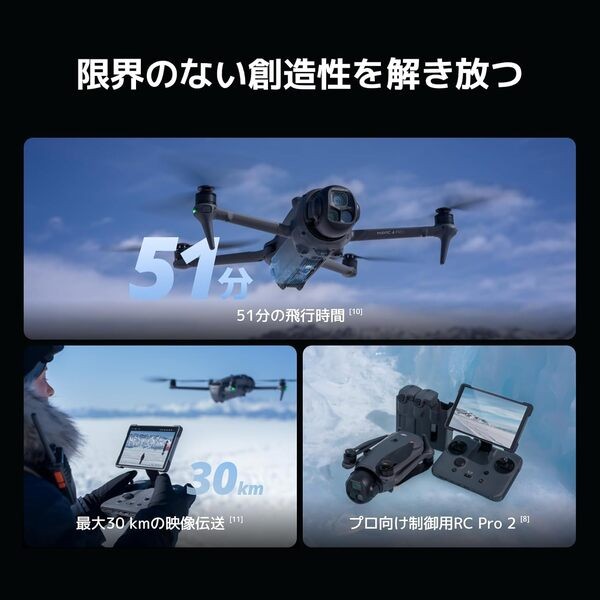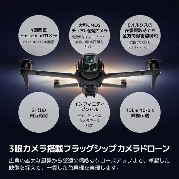DJI Mavic 4 Pro ドローン Fly More コンボ(DJI RC 2付属)1億画素超の4/3型CMOS Hasselbladカメラ搭載の3眼カメラドローン 映像伝送距離15 km 最大51分飛行時間 バッテリー3個あり 充電ハブ付き
