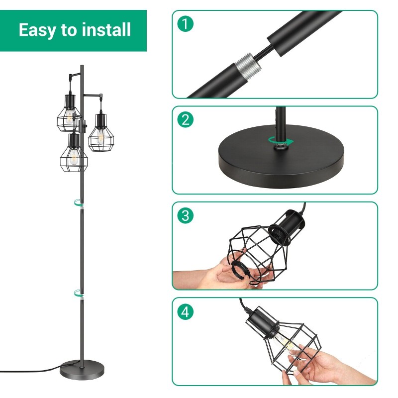 EDISHINE Dimmable Tree Floor Lamp Industrial Standing Lamp for Living Room