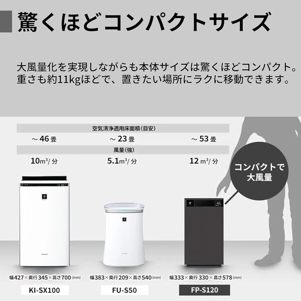 シャープ 空気清浄機 FP-S120-T プラズマクラスター 25000 コンパクト 大風量 両面吸込み構造 空気清浄 53畳 店舗 オフィス