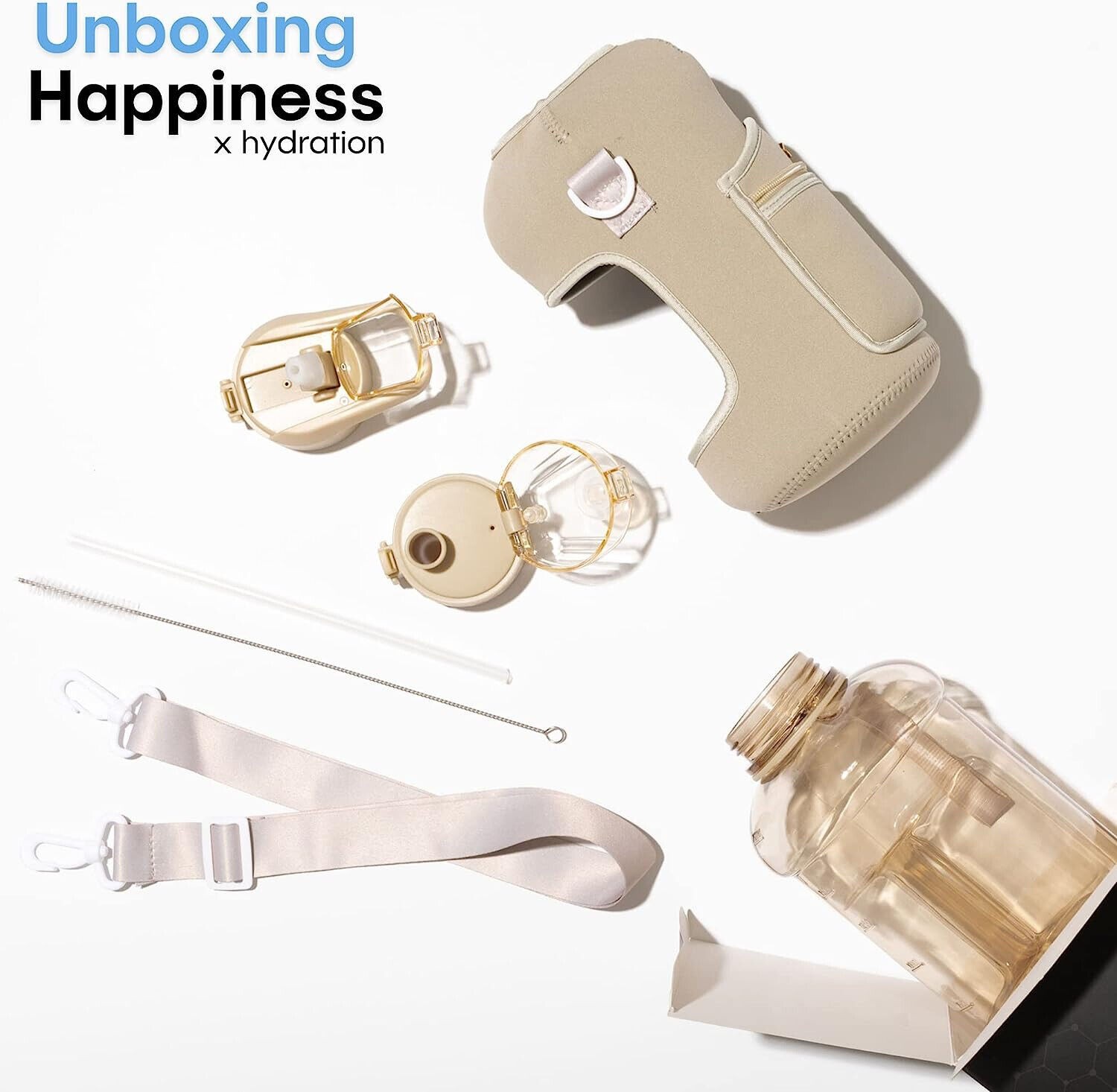 Half Gallon Water Bottle with Storage Sleeve and Straw Lid - 2.2 Liter Large Wat