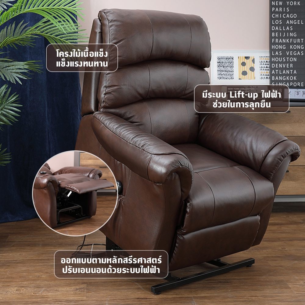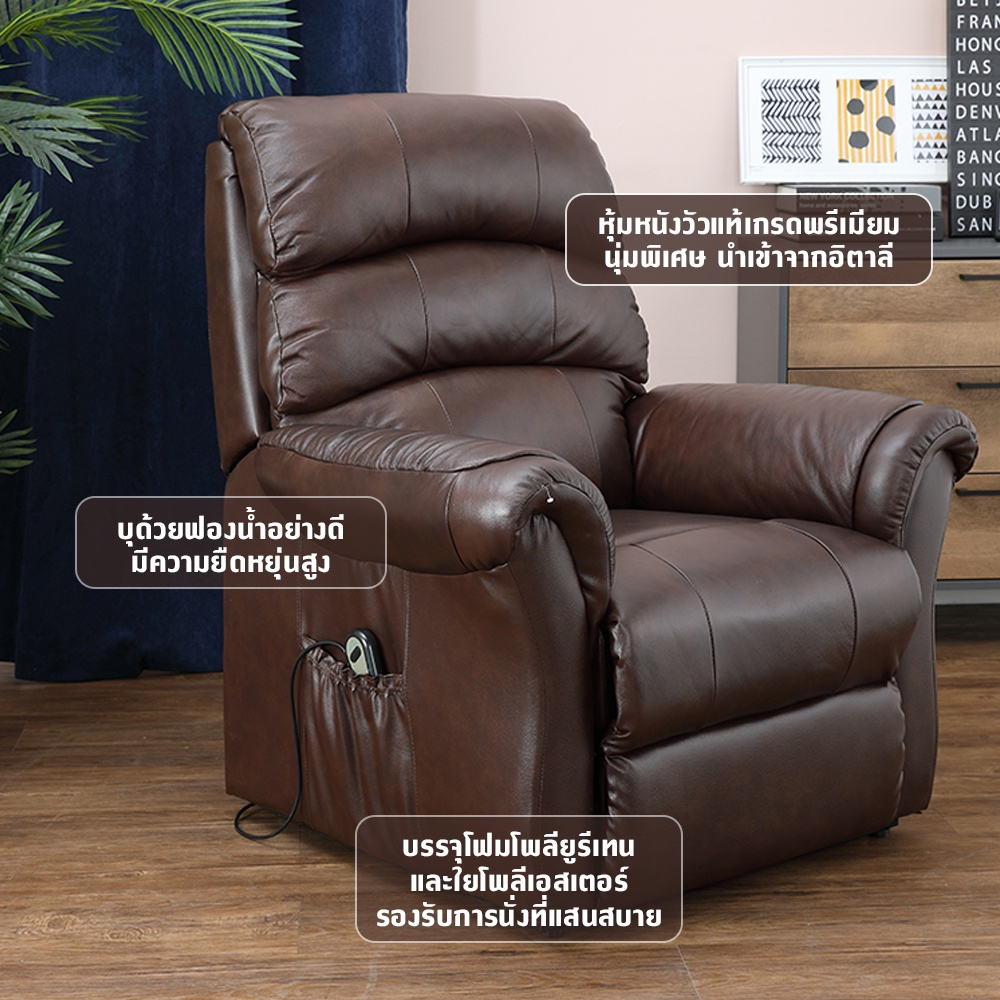 INDEX LIVING MALL โซฟาหนังแท้ปรับระดับไฟฟ้า 1 ที่นั่ง รุ่นไคล์ - สีน้ำตาล