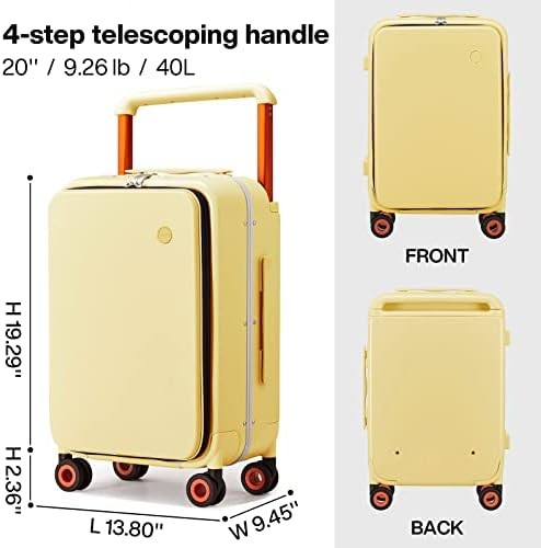 Mixi Carry On Luggage Wide Handle Luxury Design Rolling Travel Suitcase PC Hardside with Aluminum Frame Hollow Spinner Wheels, with Cover, 20 inch, Lark Yellow