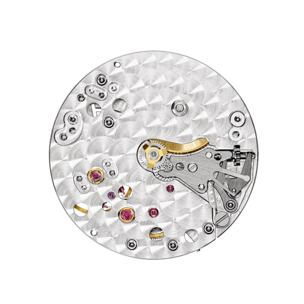 Silvery grained, brown Roman numerals, Dial flange set with 108 diamonds (0.31 ct).