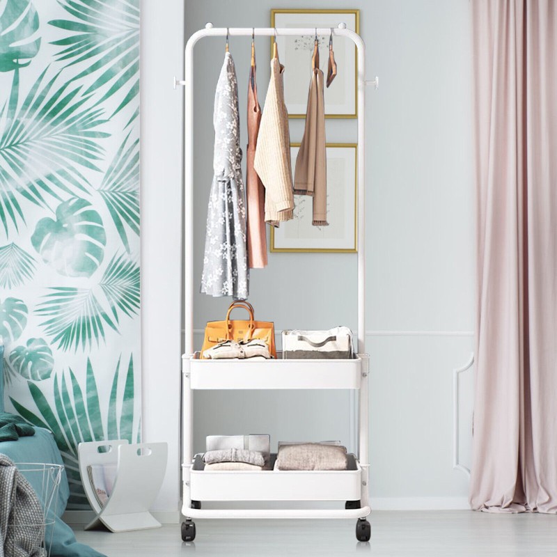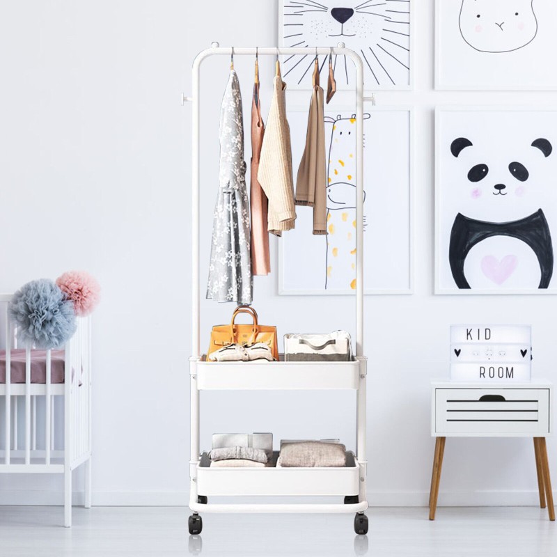 Stackable, w/Coat Hooks, Portable, Rolling, Hanging, With Baske, Clothes Hanging Bar