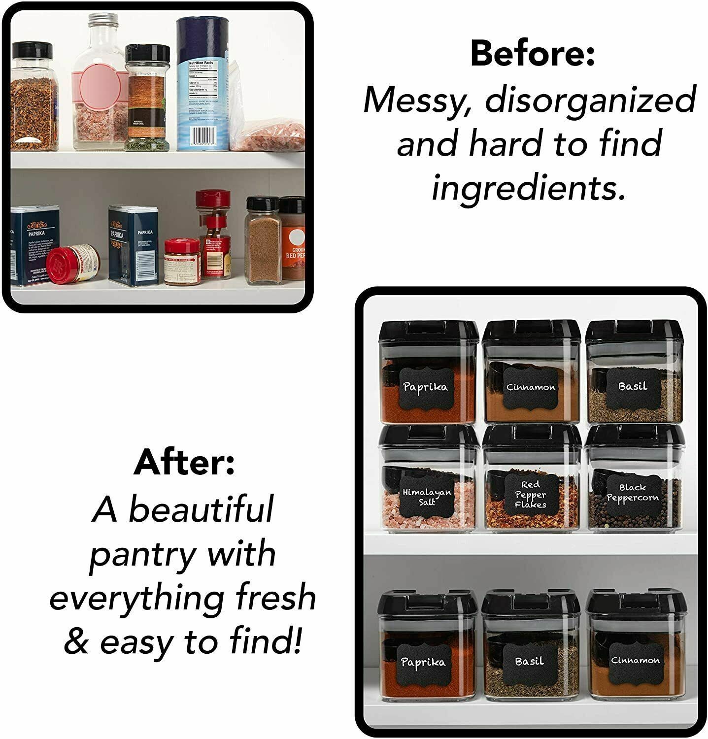 Set of 6 | Airtight Plastic Food Storage Containers | with Spoons and Labels
