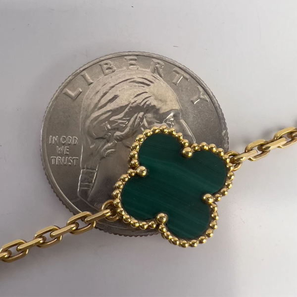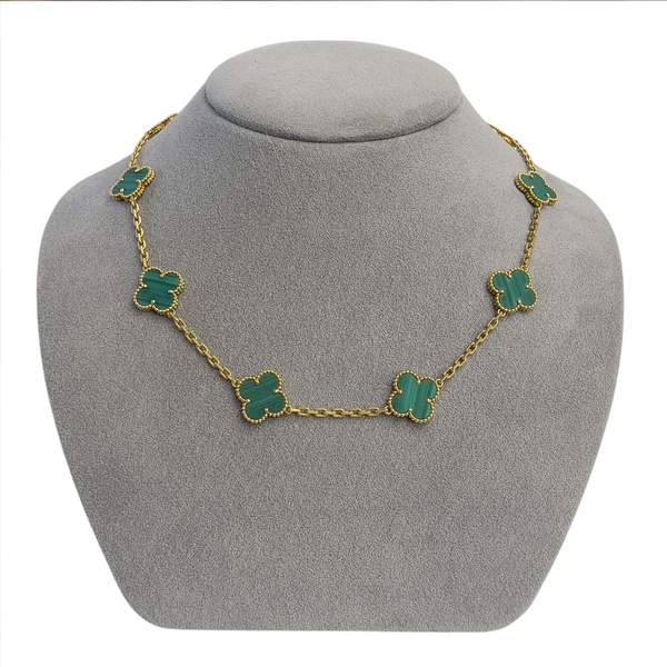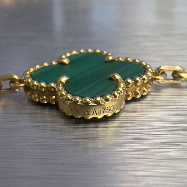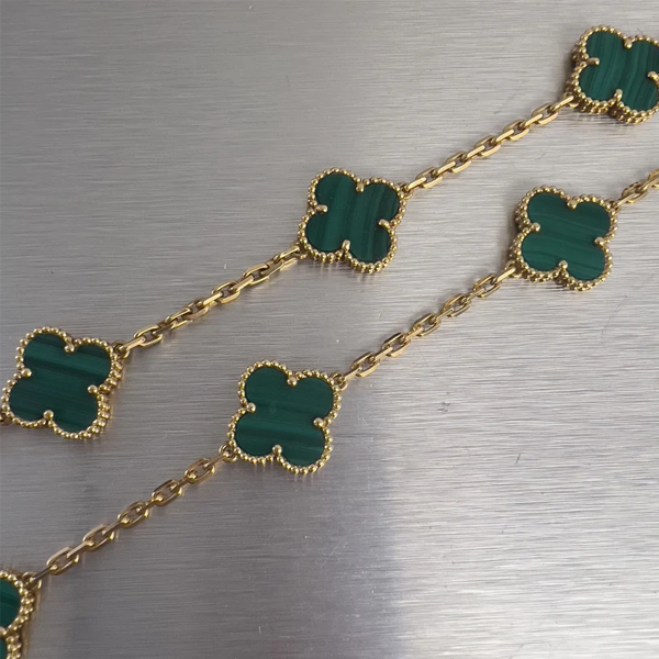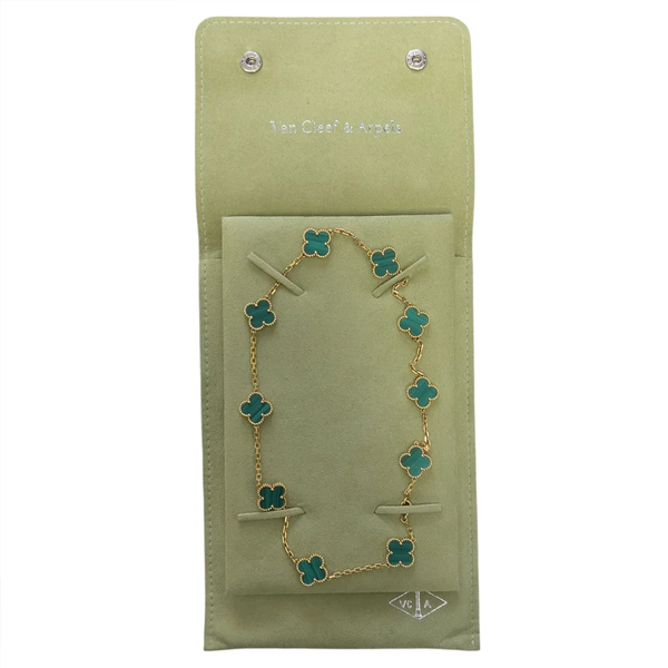 Van Cleef Arpels Malachite 10 Motif Vintage Alhambra 18k Gold Necklace 17" POUCH SKU: 500919